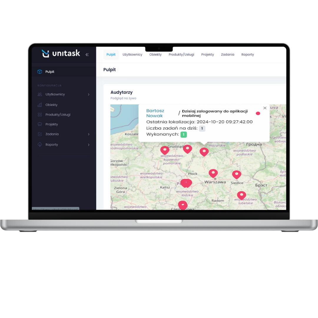 Dzięki Unitask zarządzanie pracą terenową staje się proste i efektywne. Planuj zadania, przydzielaj je pracownikom i śledź postępy w czasie rzeczywistym. Twórz raporty, dokumentuj wykonane prace i analizuj wydajność zespołu w jednym intuicyjnym narzędziu.